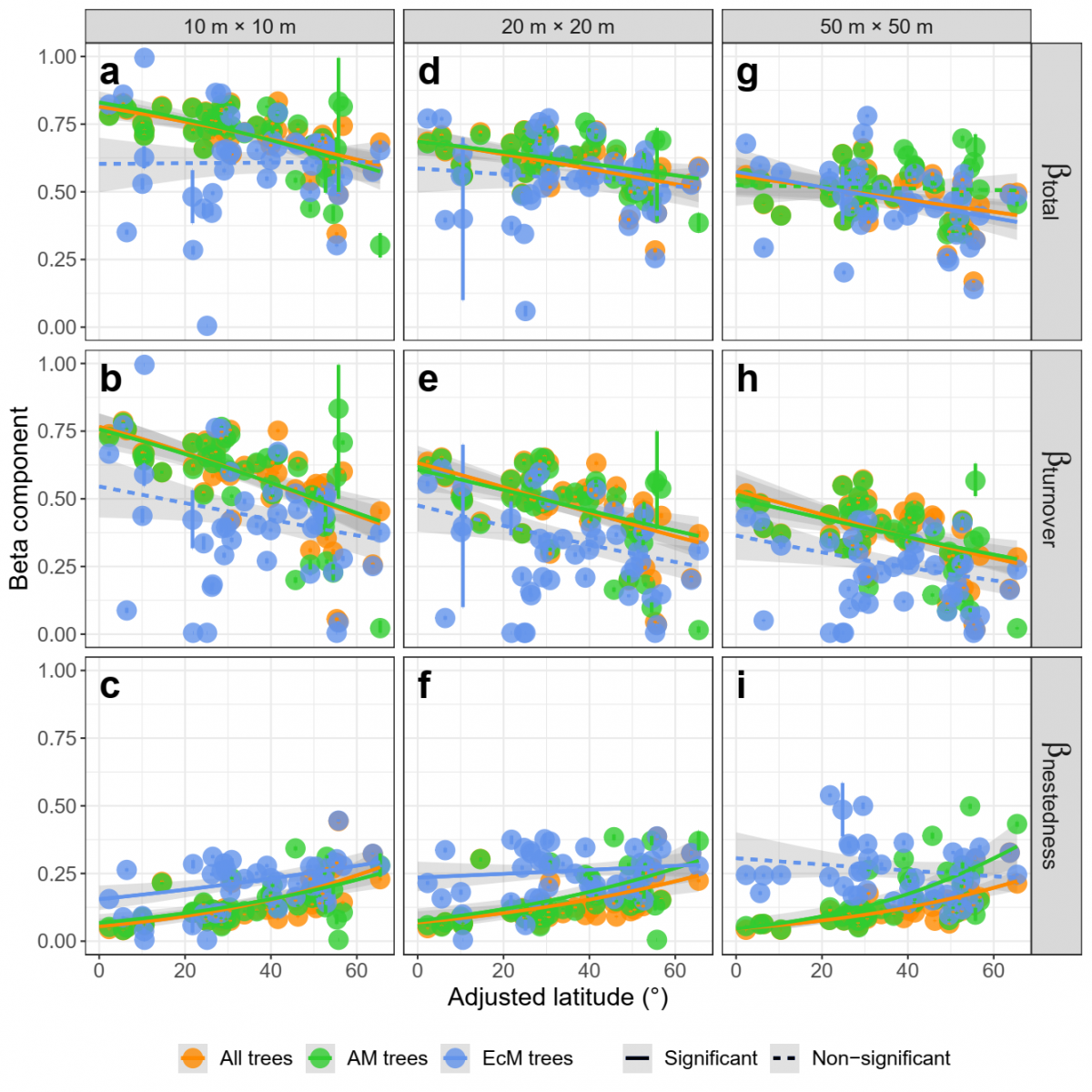 【研究进展】储诚进教授团队揭示了丛枝菌根树种对全球树木β多样性纬度梯度格局的影响