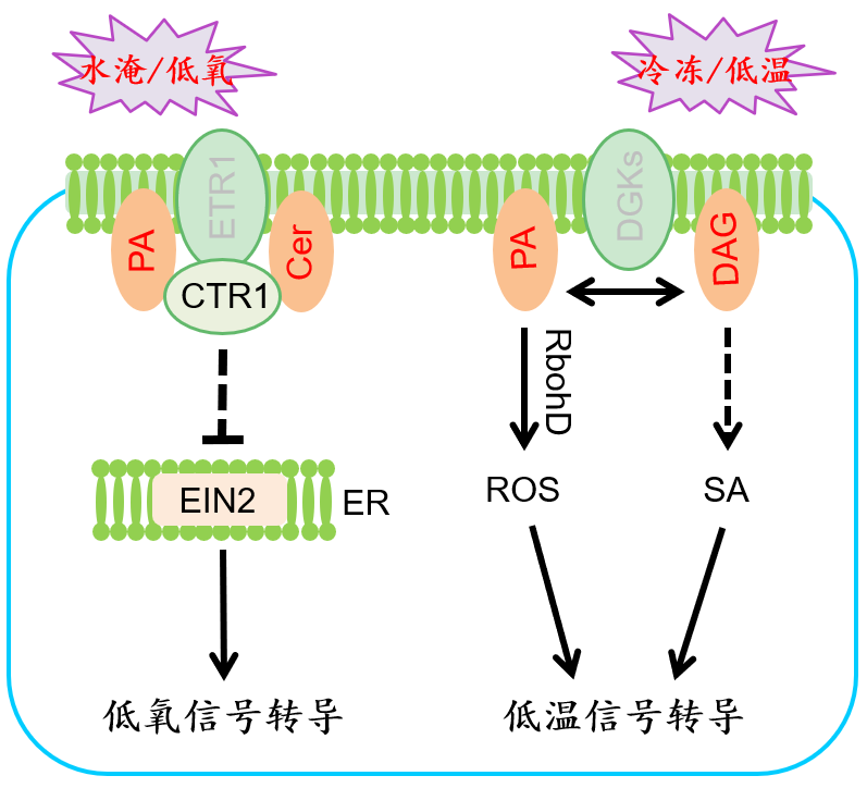 图2. 脂分子调控植物逆境信号转导的作用机理