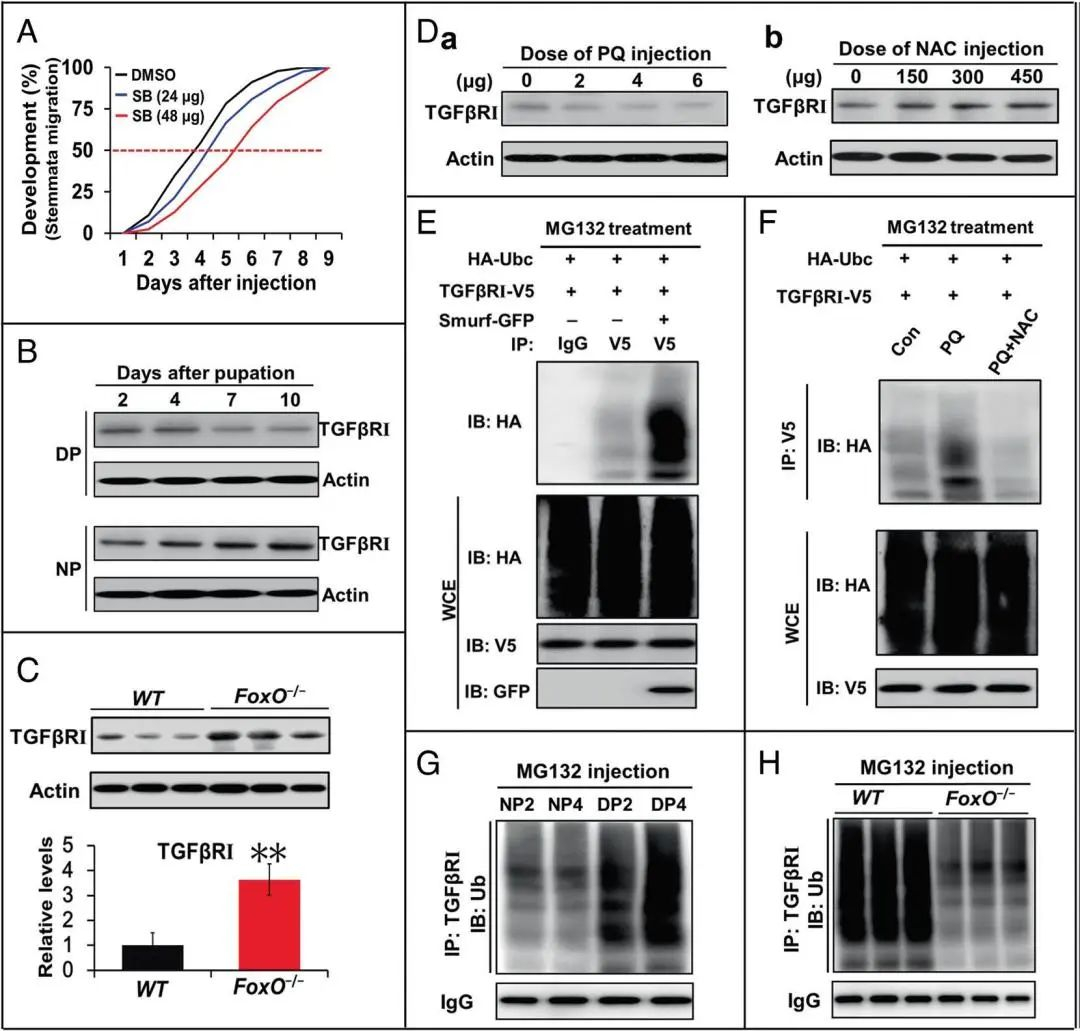图2. 在滞育开始前,泛素化TGFβRI通过FoxO-Ubc-UPS途径被降解