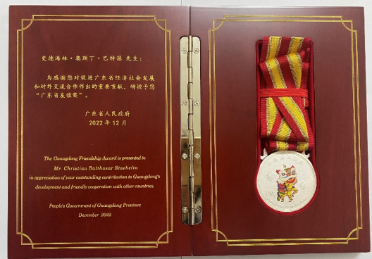 我室Christian Balthasar Staehelin教授荣获首届“广东省友谊奖”